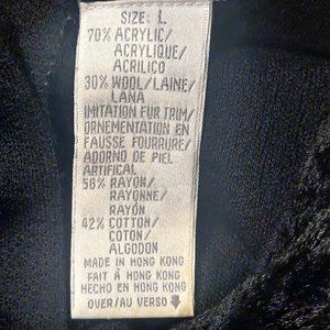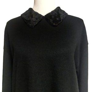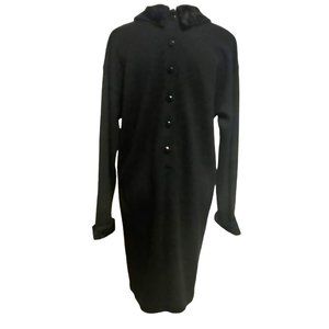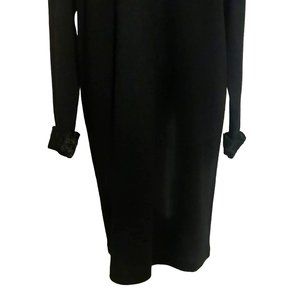 Liz Claiborne Vtg Black Acrylic Wool Faux Fur Collar Cuff Buttons Modest Dress L