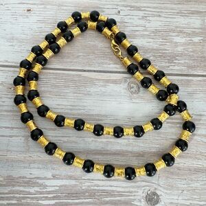 Liz Claiborne Vtg Black And Gold Regal Glam Beaded Necklace Bold Statement 28”