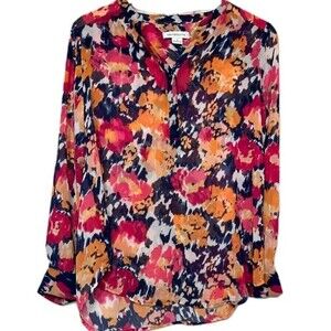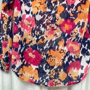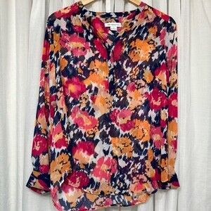 Liz Claiborne Watercolor Floral Abstract Long Sleeve Blouse Size Small