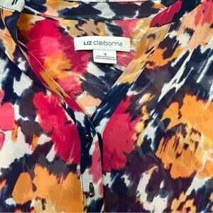 Liz Claiborne Size Small Multicolored Abstract Watercolor Floral Long Sleeve Blouse Top.Beautiful blouse that can be dress up or down. Pair with a pair of jeans or slacks for work or casual time