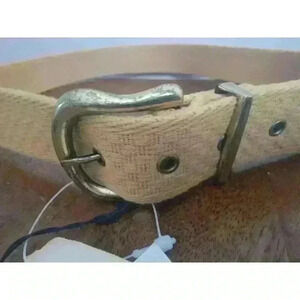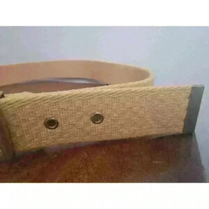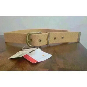 Liz Claiborne Web Canvas Belt Brass Buckle Vintage mustard Gold yellow NEW W TAG