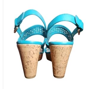 Liz Claiborne Kian Teal Laser Cut Wedge Sandals