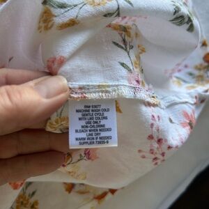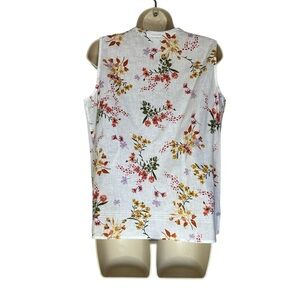 This white button down, floral shirt from Liz Claiborne features a notched collar and a boxy fit, offering a stylish and comfortable option for any occasion. The shirt's buttoned design adds a classic touch, making it a versatile addition to your wardrobe.