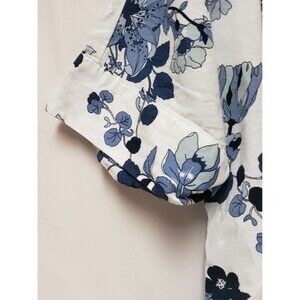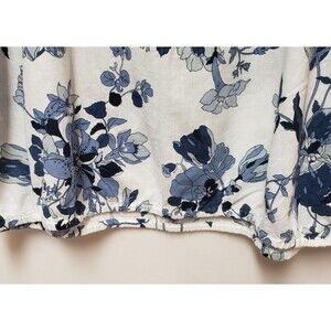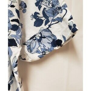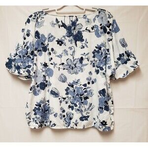 Liz Claiborne White Navy Blue Floral Print Short Sleeve Summer Top Sz XL NWOT