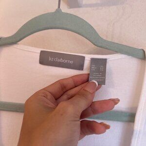 Liz Claiborne White Pleated Front Long Sleeve Blouse Size XL
