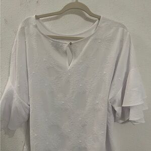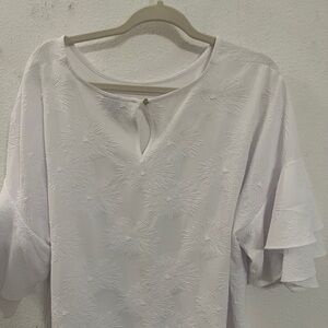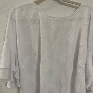 Liz Claiborne White Textured Blouse | Bell Sleeve Top | Size 1X