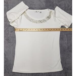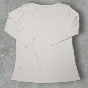 Liz Claiborne White Top Sz SP Cotton Blend Grommet Neck Stretch Casual Chic