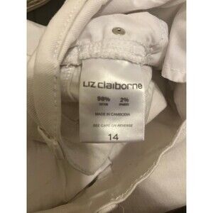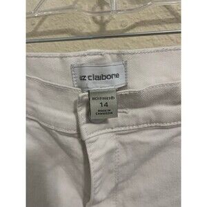 Elevate your wardrobe with these gently used Liz Claiborne White Boyfriend Jeans, size 14, perfect for any occasion. Crafted from a comfortable blend of 98% cotton and 2% spandex, these jeans offer a flattering fit with just the right amount of stretch. Their classic white hue makes them a versatile staple, easily paired with any top for a chic look. Plus, they come from a smoke-free home, ensuring freshness and quality. Don't miss the chance to add this timeless piece to your collection!