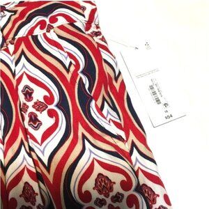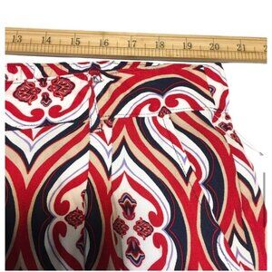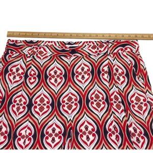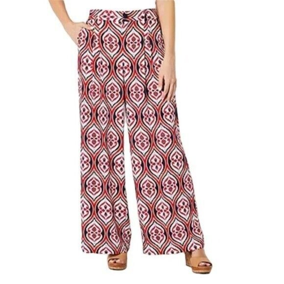 Liz Claiborne Wide Leg Pants Women Size 18 Flat Front Comfort Red Blue Geo Print