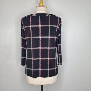 Liz Claiborne Windowpane Pattern Pullover Square Neck 3/4 Sleeve Top