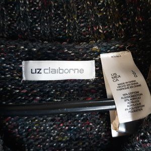 A very nice warm sweater. Liz Claiborne size large Pullover. Multi colored. Button on collar.
