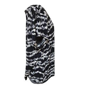 Liz Claiborne Woman 2X Black White Abstract Print Top 2X Short Sleeve Stretch