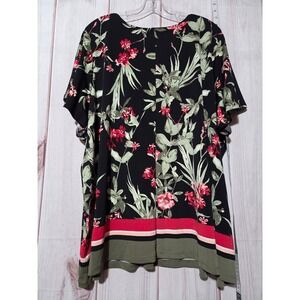 Liz Claiborne Woman 3x Black Floral Short Sleeve Top Blouse Stretchy Flowy