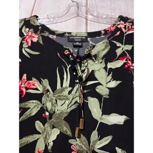 Keywords: Liz Claiborne, Woman, Blouse, Top, Floral, Black, Plus Size, Lace Up, Short Sleeve, Bohemian, Casual, Contemporary, Comfortable