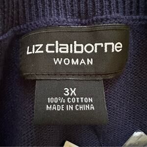 Liz Claiborne Woman Blue Round Neck Cotton Knit Gold Buttons Top Sweater 3X NEW
