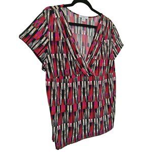 Liz Claiborne Woman Colorful Crossover V-Neck Short Sleeve Blouse Size 2X