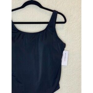Liz Claiborne Woman One Piece Swimsuit Ribbed Size 14 Bathing Suit Black NEW