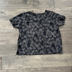 Liz Claiborne Woman Shirt Black with Dot Flower Pattern Petite (SIZE 2)