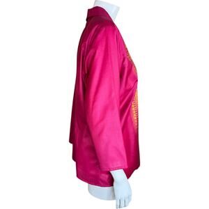 Liz Claiborne Woman XL Pink Button-Up Gold Metallic Details 3/4 Sleeve Blouse