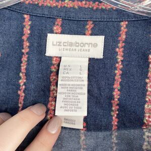 Liz Claiborne Woman's Button UP Shirt Blouse Sz L ~ Blue & Pink ~ Long Sleeve