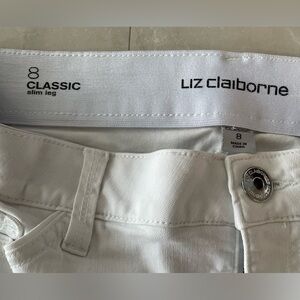 Liz Claiborne Women Jean Size 8 White Classic Fit Straight Leg Mid Rise Flatters