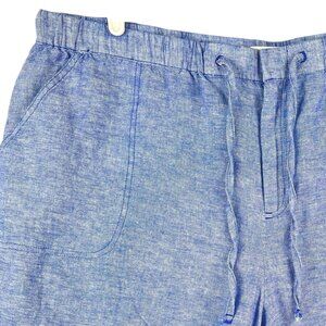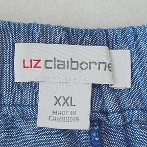 Liz Claiborne Women Linen-Blend Blue Shorts Sz XXL Elastic Waist Drawstring Zip