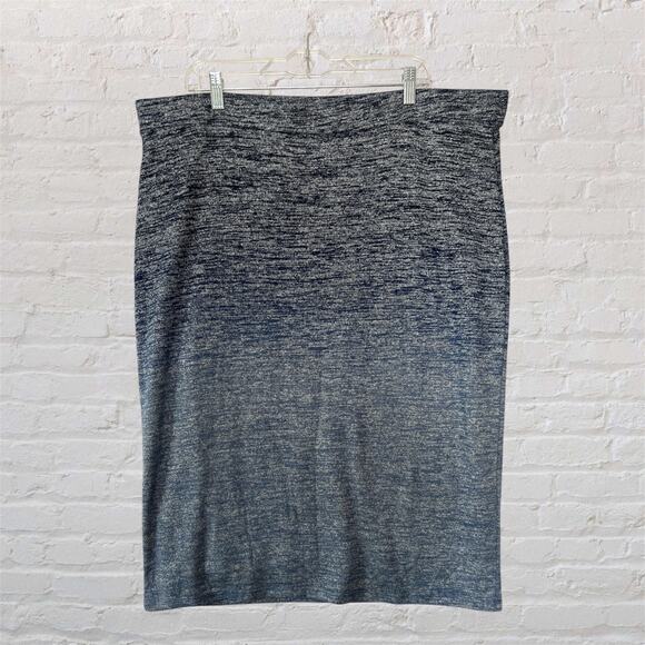 Liz Claiborne Women Plus Blue Gray Ombre Knit Pencil Midi Bodycon Skirt Size 2XL