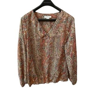 Liz Claiborne Women Sheet Paisley Print Blouse Size 1X Metallic Thread Career