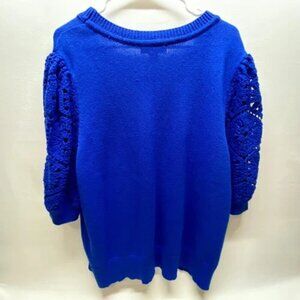 Liz Claiborne Women's 0X Knit Sweater Top Deep Royal Crochete Short Sleeves NWT