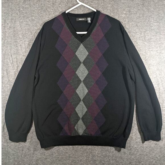 Liz Claiborne Women's Argyle Purple Grey 100% Cotton Pullover Sweater Size XL