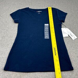 Liz Claiborne Womens Basic Navy Blue Top XS Cotton V-Neck Short Sleeve