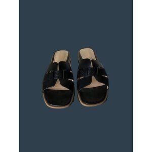 Liz Claiborne Womens Black Leather Slide Sandals Size 9 With Textured Straps & W