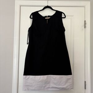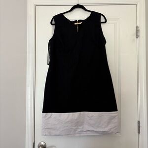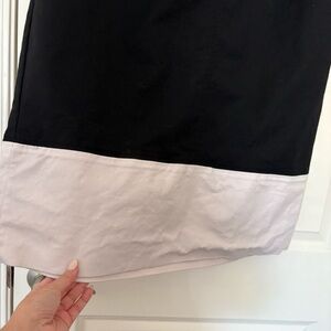 Chic backless design. Black body with white hem. Perfect for stylish outings. Dress is in very good condition.