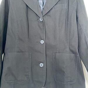 Liz Claiborne Womens Blazer Size 12 Petite Black Notch Lapel 100% Cotton Career