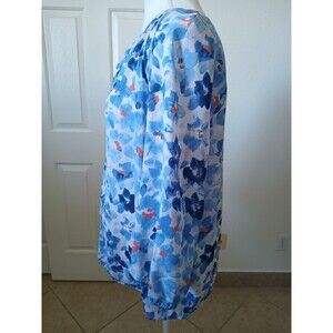 Craft a chic, versatile look with the Liz Claiborne Women's Blouse, featuring a vibrant blue floral print that captures the essence of spring and summer. The blouse boasts a flattering V-neck and stylish 3/4 balloon sleeves, perfect for transitioning from the office to casual outings. Its tie closure adds a touch of sophistication, while the tasseled accents provide a playful, bohemian flair.