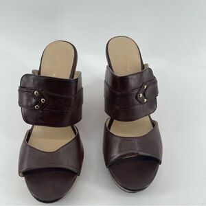 Liz Claiborne Women’s Brown Faux Leather Slip-On Platform Wedge Sandals Size 9