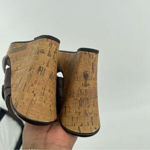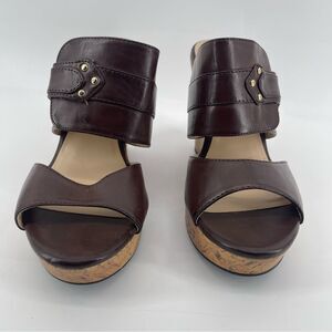 Liz Claiborne Women’s Brown Faux Leather Slip-On Platform Cork Wedge Sandals Size 9