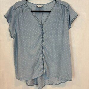 Liz Claiborne Women's Button Short Sleeve polka Dot Blouse Sz large Coquette