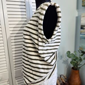 Liz Claiborne Women's Cap Sleeve Tee Army Green Striped 100% cotton Size Large