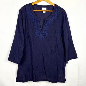 Liz Claiborne Women's Cotton Embroidered Knit Tunic Top Sz XL Sheer Breathable