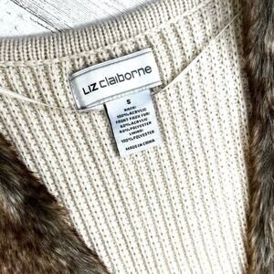 Liz Claiborne Womens Faux Fur Sweater Vest with Knit Back Size S Pockets