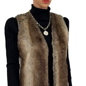 Liz Claiborne Womens Faux Fur Sweater Vest Shaker Knit Back Sz S Pockets Long