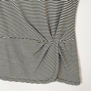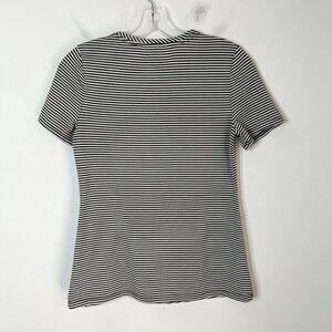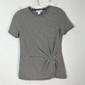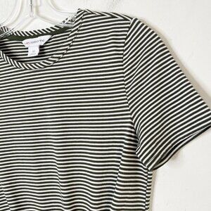 Liz Claiborne Women's Faux Wrap T-Shirt XS Green Striped Ruched Short Sleeve Top