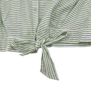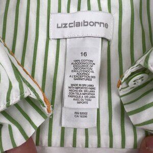 Liz Claiborne Women's Green Striped Tie Front Blouse Size 14 button down