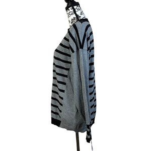 New With Tags Liz Claiborne Women's Grey Black Striped Mock Neck Sweater Large