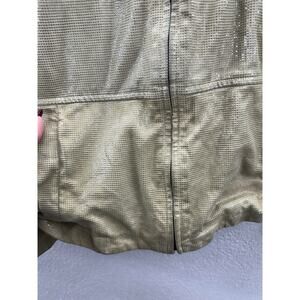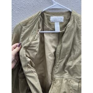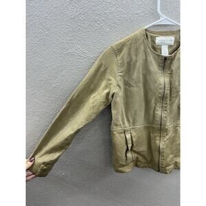 Liz Claiborne Womens Jacket Size Petite Small Tan ZipUp Suede Collarles Lizsport