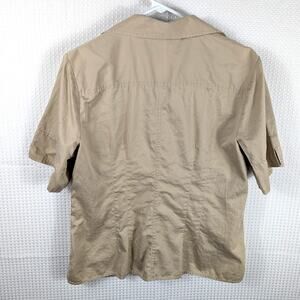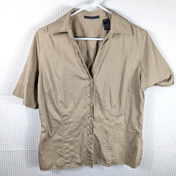 Liz Claiborne Women’s Large 100% Cotton Short Sleeve Button Shirt Khaki Beige