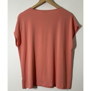 Liz Claiborne Women's Large Flowy Gold V-Neck Detail Peach Orange Cap Sleeve