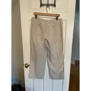 Liz Claiborne Womens Large Pants Linen/Cotton Tan Pockets Tie Close Some PillingInner Thigh, see Photos