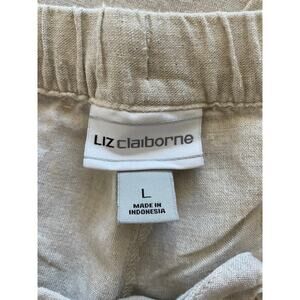 Liz Claiborne Womens Large Pants Linen/Cotton Tan Pockets Tie Close Some Pilling
